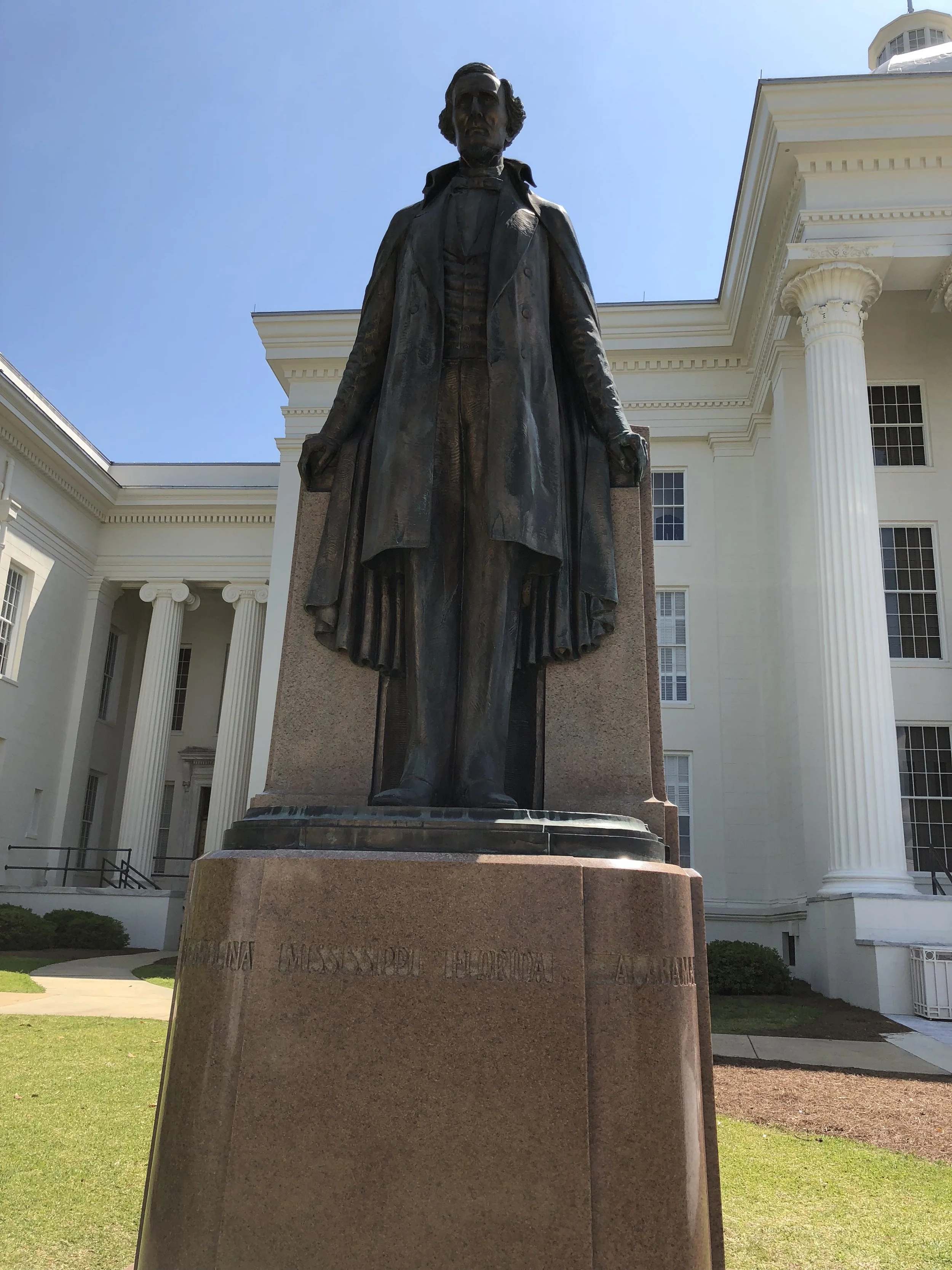 In his inaugural Wallace proudly noted that he stood on the spot where Jefferson Davis had been sworn in as president of the Confederate States of America in 1861. In fact, Davis’ statue stands near that spot today, and the Confederacy’s first white house is just across the street. A few blocks away, toward the Alabama River, is the old site of the city’s slave markets, where men, women, and children were brought by boat or on the railroad, itself built by slave labor, and auctioned to the highest bidder. At the beginning of the Civil War, Alabama had 435,080 slaves. They made up 45% of the state’s total population and 100% of its black population – because 27 years earlier Alabama had forbidden free black people to live within its borders.